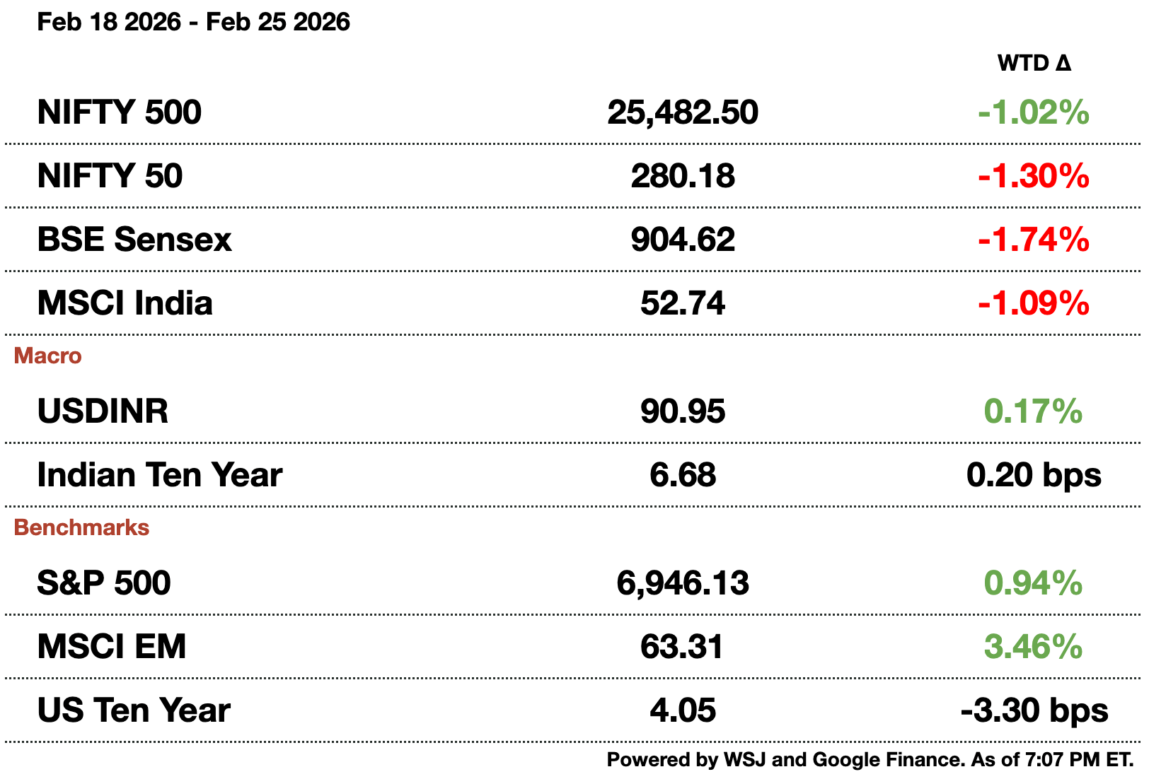 India's economic activity accelerated based on February PMIs. Manufacturing climbed to 57.5 from 55.4 while services remained flat at 58.4. The composite index rose to 59.3 compared to 58.4 last month. There has been accelerating business confidence and the momentum is expected to continue while the US grapples with its own tariff regime.